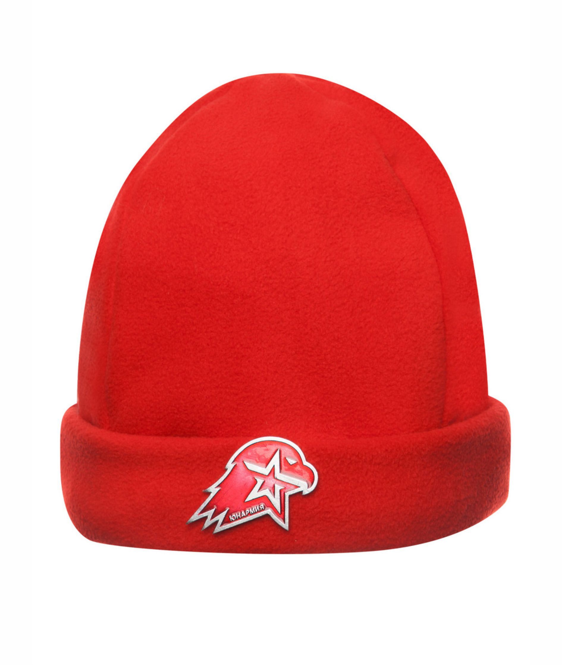 • Шапка флюсовая "Юнармия" красного цвета в комплекте со значком.