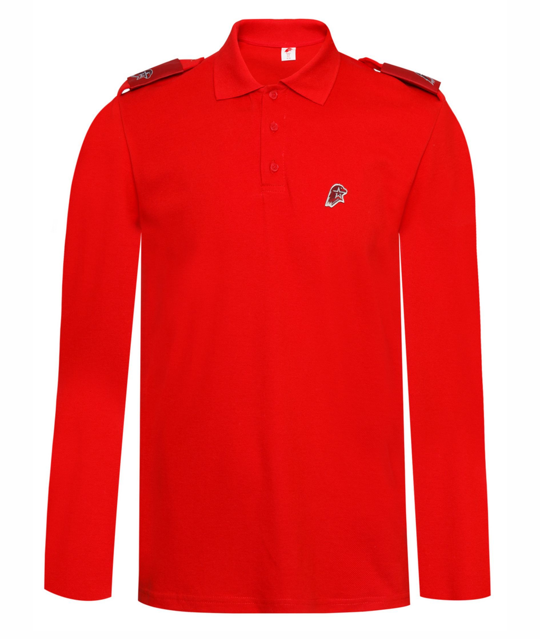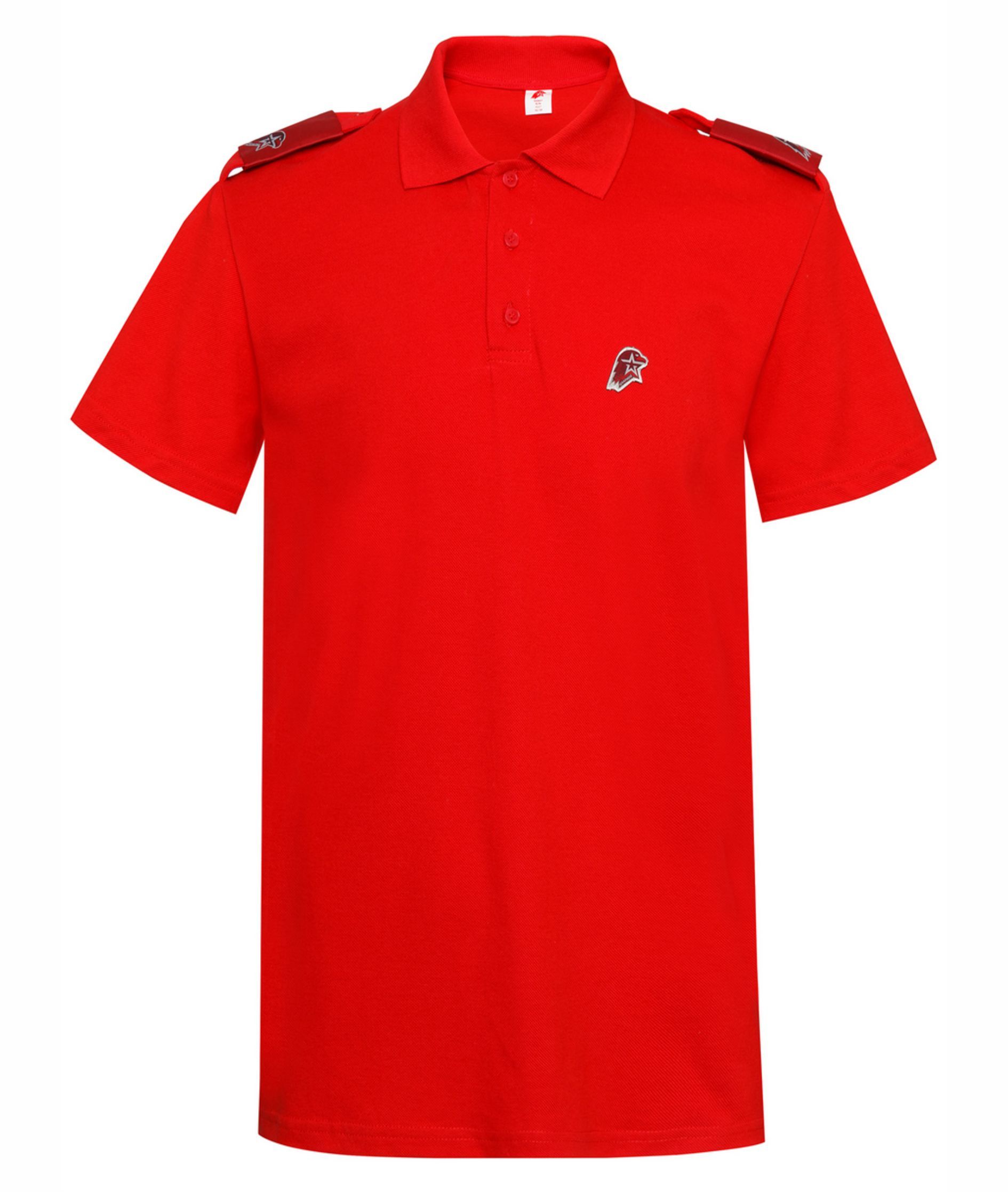 • Рубашка поло красного цвета в комплекте с шевронами,  нашивка Юнармия на груди. Состав 100% Хлопок