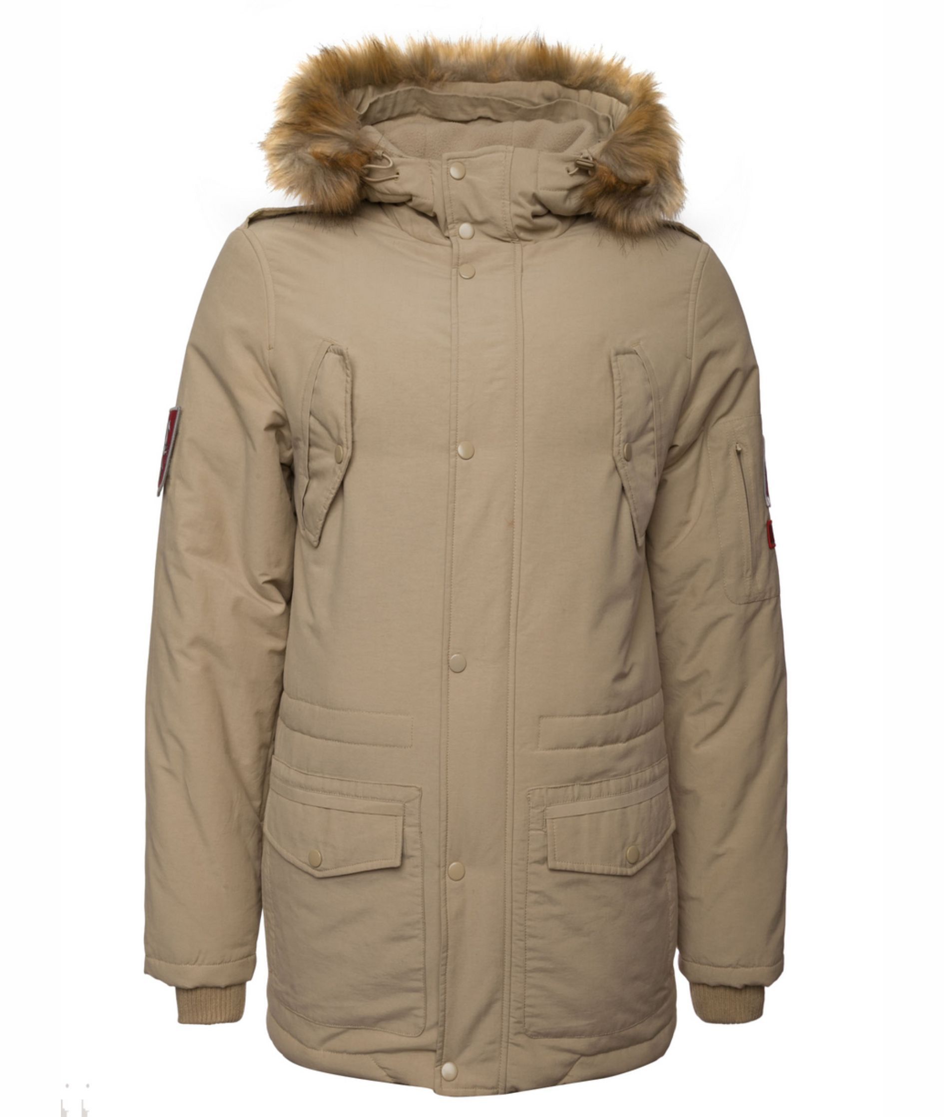 • Куртка "Юнармия" бежевая зимняя. Состав: 70% хлопок, 30% нейлон, наполнитель — утеплитель «Аляска» 200 гр. (инновационная разработка в сфере утеплителей) , искусственный мех; паро — и воздухопроницаемость; влагонепроницаемость;