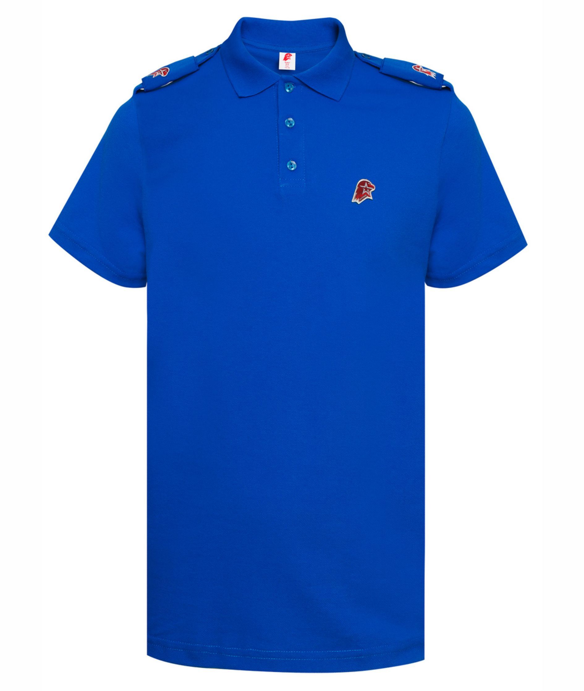• Рубашка поло синего цвета в комплекте с шевронами, нашивка Юнармия на груди. Состав 100% Хлопок